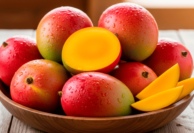 El Mango Tommy se reconoce por su forma ovalada, su piel brillante en tonos rojos y amarillos, y su pulpa firme de sabor dulce y aroma característico.